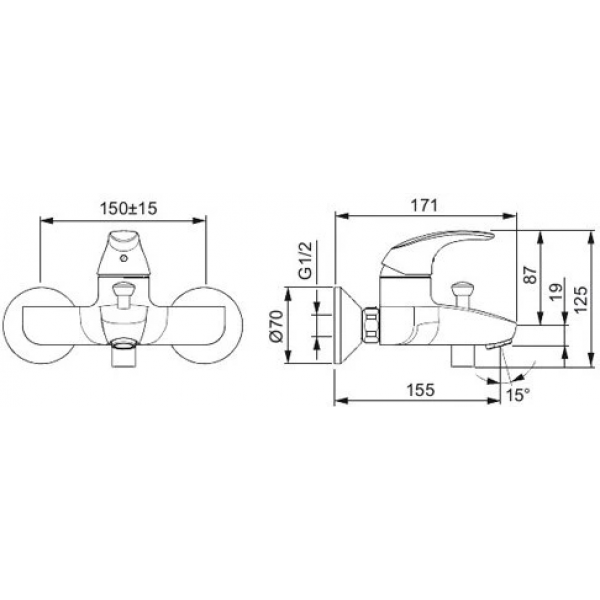 ORAS POLARA 1440Y Смеситель для ванны и душа однозахватный с фиксированным изливом