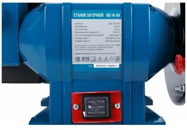 Станок заточной "Кратон" BG 14-04, 250 Вт, 2950 об/мин, 200 ? 40 ? 20 мм, 150 ? 20 ? 32 мм Кратон 16 .