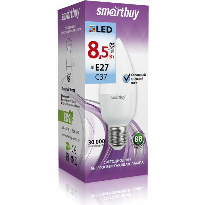 SMARTBUY Светодиодная лампа Smartbuy SBL-C37-9-5-60K-E27 холодный дневной свет интересное: