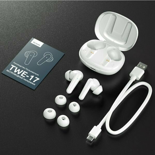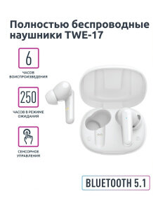 Беспроводные BLUETOOTH наушники TWE-17 True Wireless WHITE OLMIO