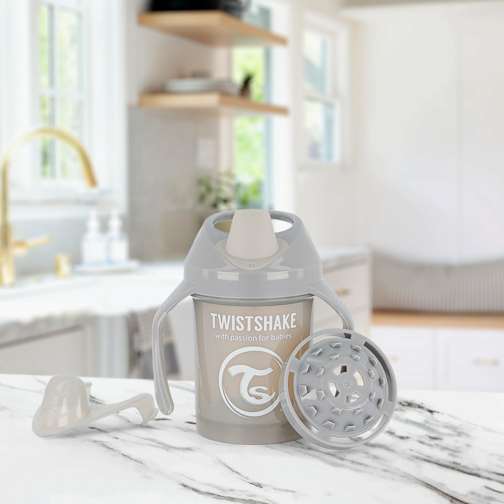 Купить Детский поильник-непроливайка с силиконовым твёрдым носиком Twistshake Mini Cup, 230 мл, от 4 мес. Пастельный серый