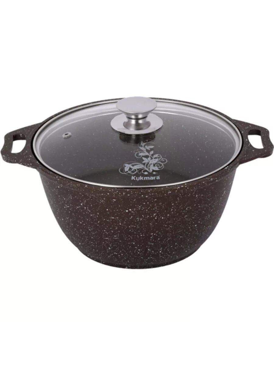 Кастрюля Kukmara 6 л, Мрамор кофейный, со стеклянной крышкой 26см, кмк62-1а