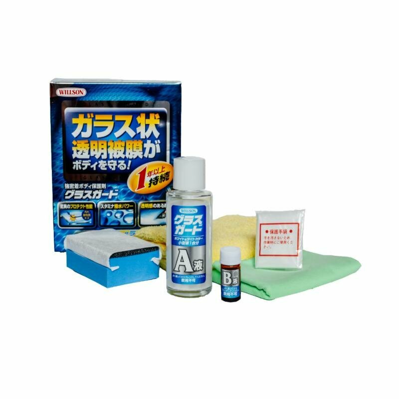 | Дополнительная информация | обьем - 110 мл (состав A) + 4,5 мл (состав B); структура - состав А - алкосилан, алкоксисилокан, изопарафин, нонан, диоксид кремния; состав B - органометаллический состав, 1-бутанол; расход средства - примерно 50 мл на 1 легковой автомобиль; сохранение защитных свойств - защита кузова - до 1 года, блеск и гидрофобность - до 6 месяцев; срок годности - 5 лет (дата изготовления указана на упаковке); сертификат - Willson Co. Ltd. 6-13, Saginomiya-1-Chome, Nakano-ku, Tokyo 165-0032 |