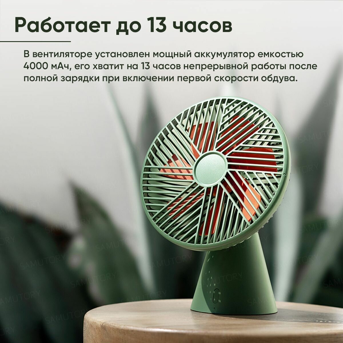 Вентилятор настольный беспроводной на аккумуляторе Xiaomi Youpin SOTHING Silent Rainforest Mini Fan Зеленый, 13 часов автономной работы