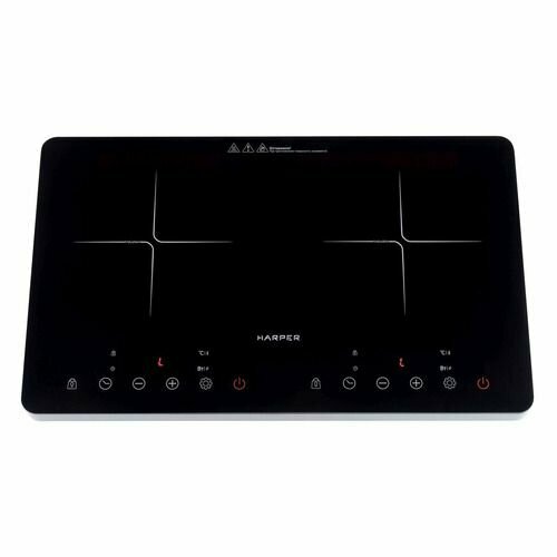 Индукционная плита настольная HARPER HIC-201 / стеклокерамика / 2 конфорки, сенсорное управление, таймер приготовления, черная