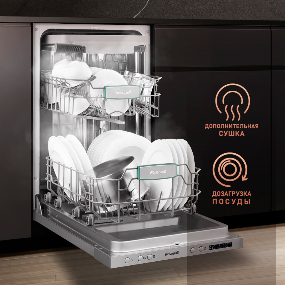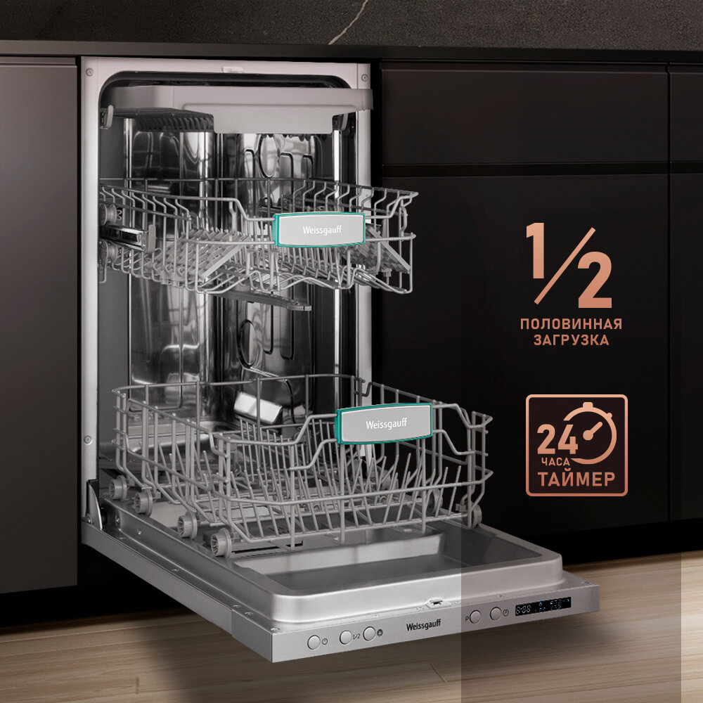 СохранитьПосудомоечная машина встраив. Weissgauff BDW 4543 D 2100Вт узкая интересное: