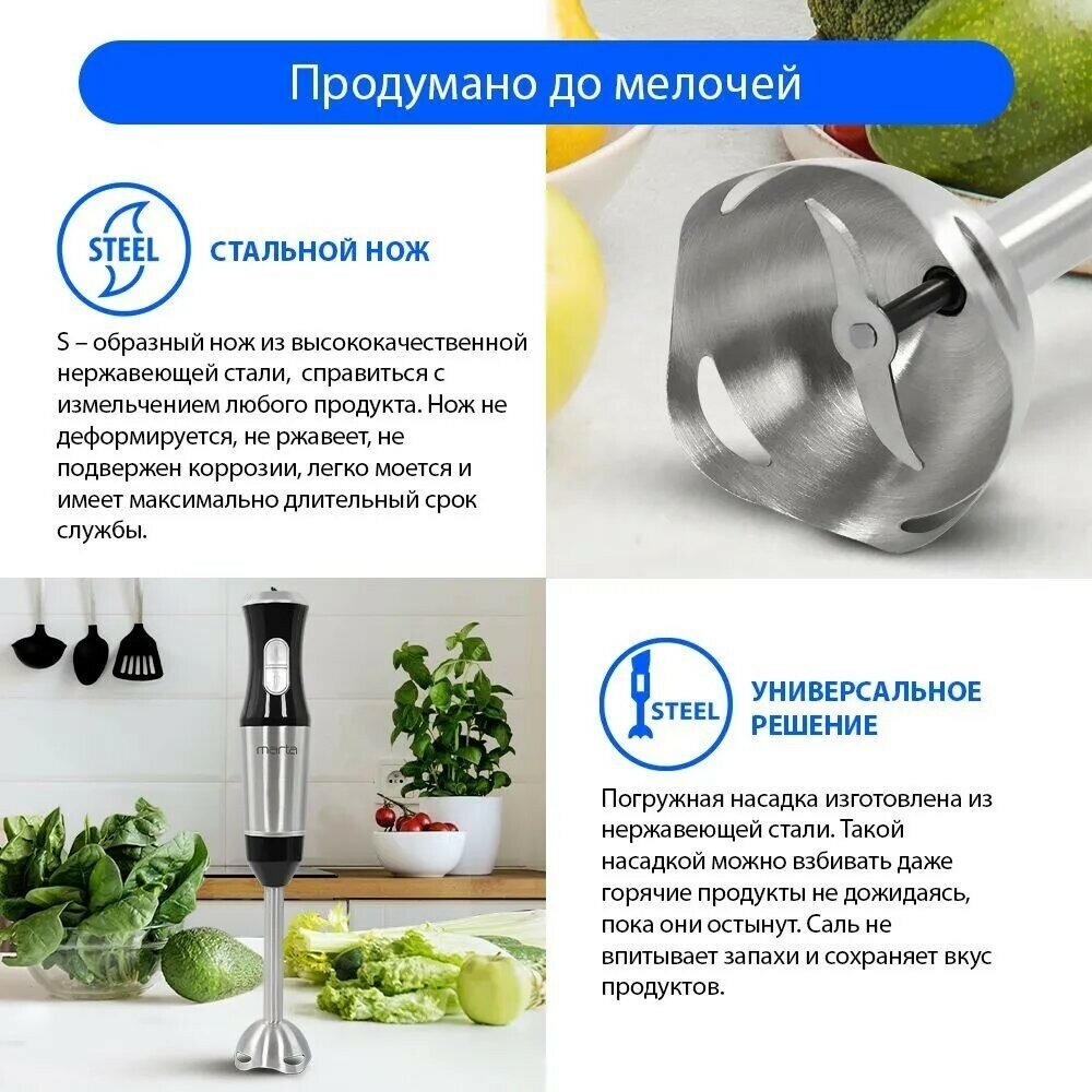 Погружной блендер MARTA MT-1574, черный жемчуг
