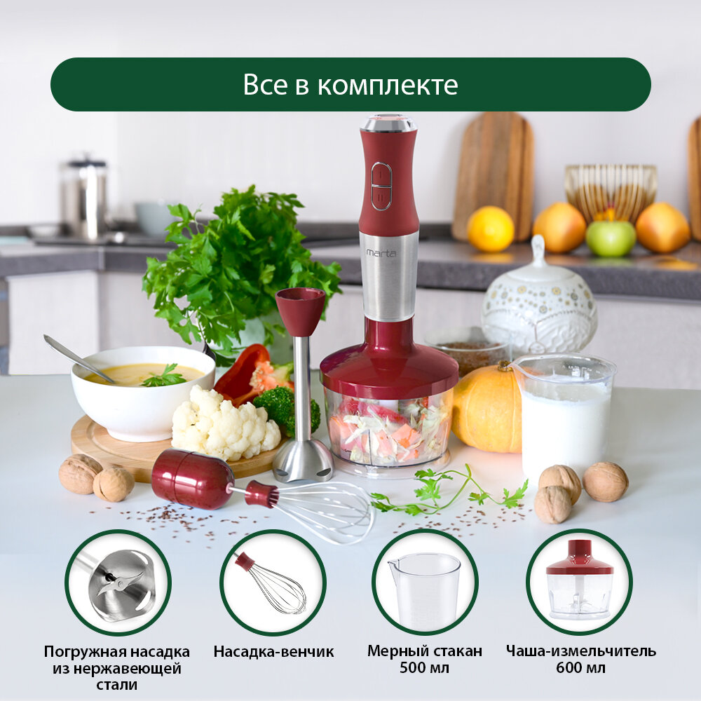 Погружной блендер MARTA MT-1566, бордовый гранат