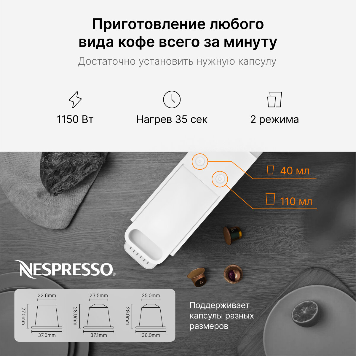 | Тип капсул | Nespresso Original |