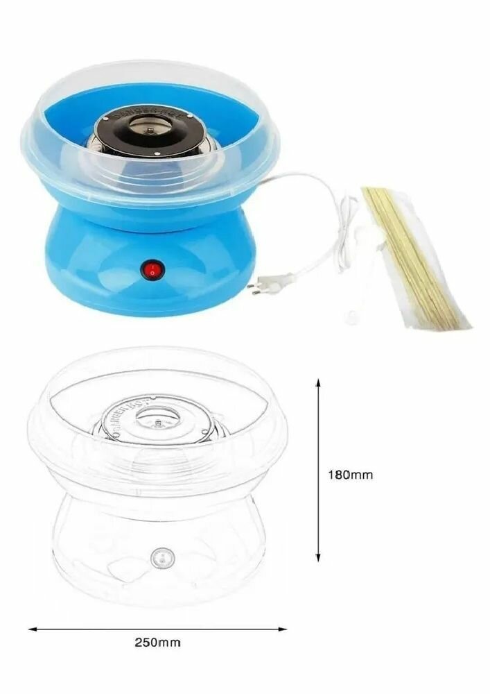 | Подробная комплектация | Аппарат для приготовления сахарной ваты, набор деревянных палочек, мерная ложечка, инструкция по эксплуатации, коробка |
