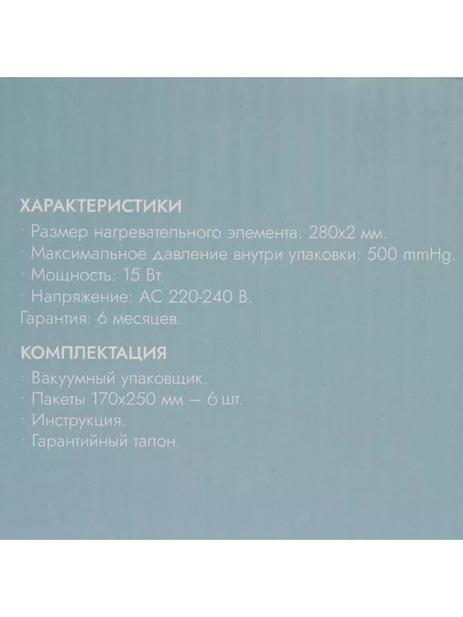Купить Вакуумный упаковщик Luazon Home LPS-02, 15 Вт, 6 пакетов, 220 В, 25 см, бирюзовый