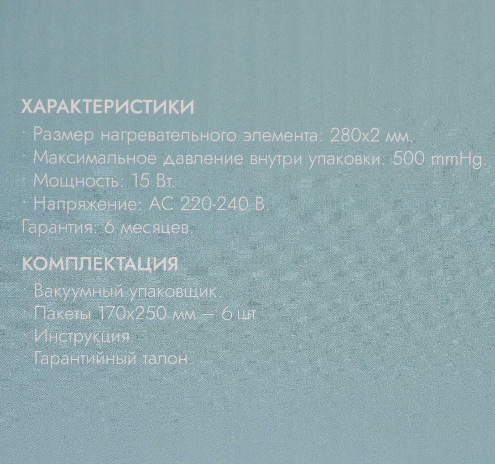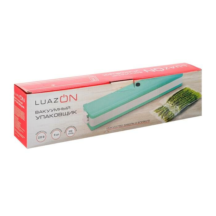 Вакуумный упаковщик LuazON LPS-02, 15 Вт, 6 пакетов, 220В, 25 см, бирюзовый Luazon Home 4353490 .
