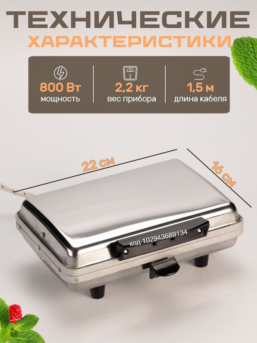 Вафельница электрическая 800ВТ 222Х198Х85ММ тонк вафли возм ИЗМ толщины вафель куряночка новинка интересное:
