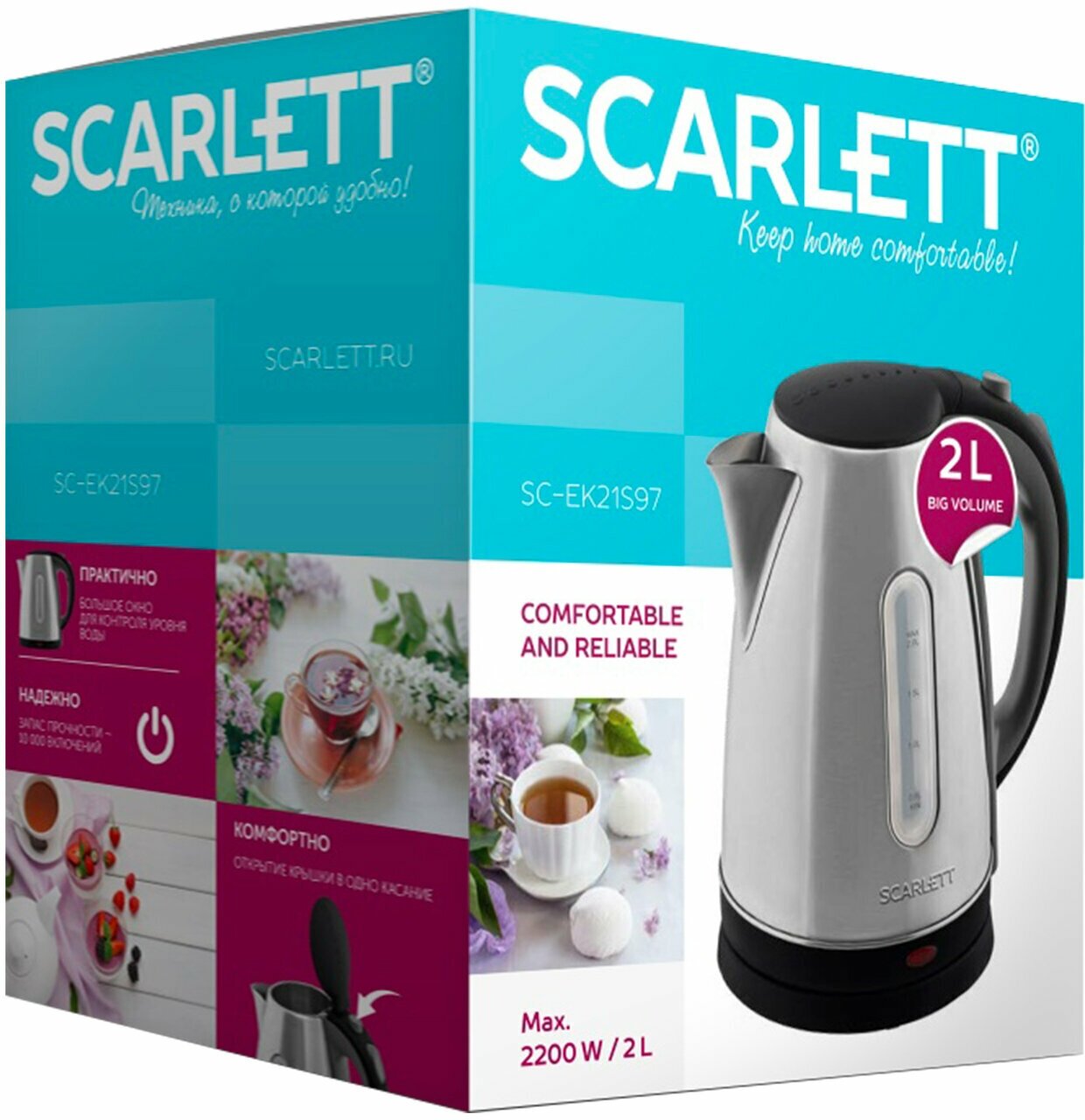 Чайник SCARLETT SC-EK21S97, 2 л, 2200 Вт, закрытый нагревательный элемент, сталь