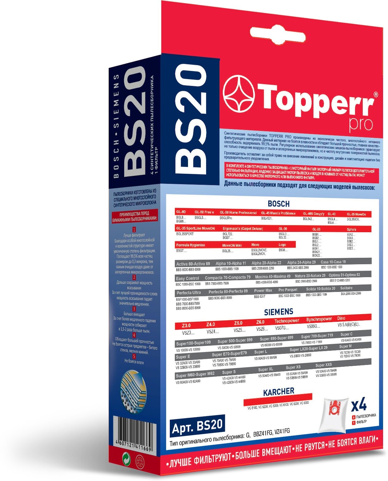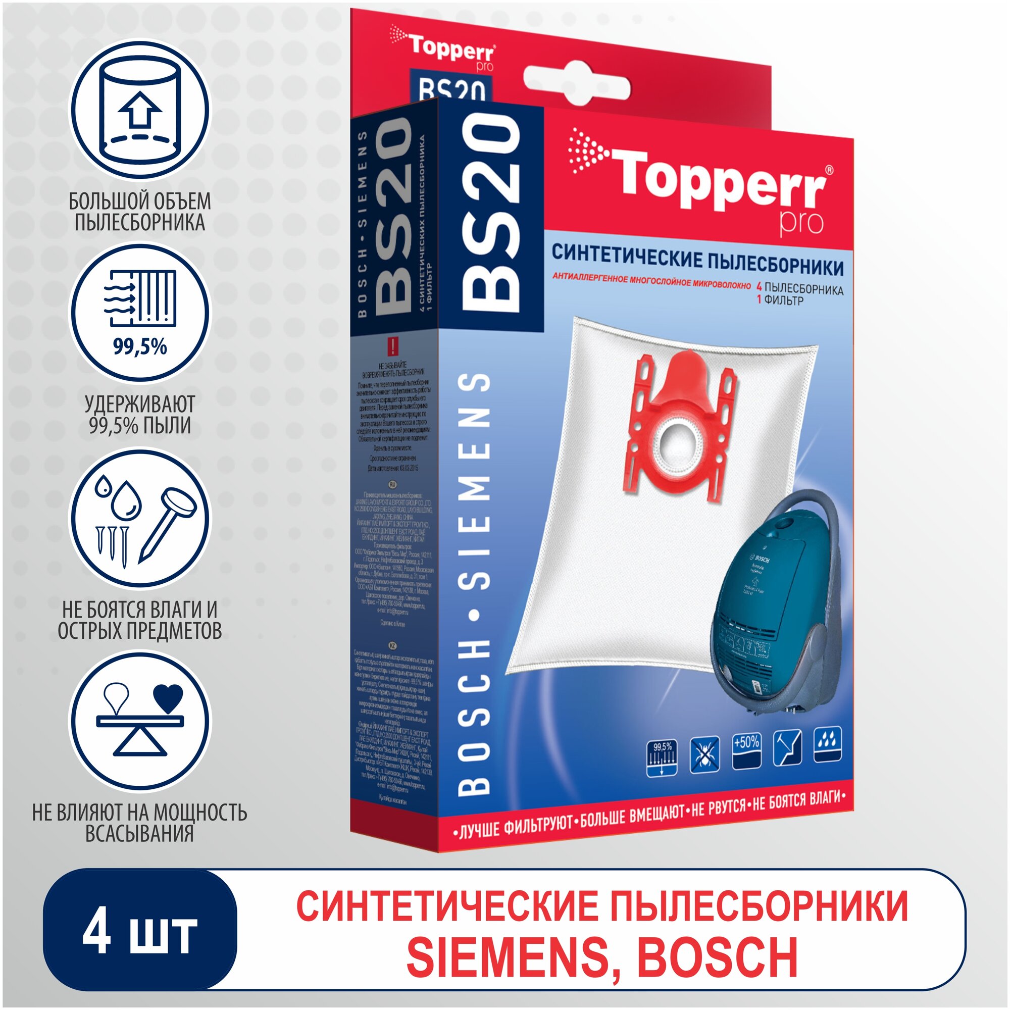Topperr Синтетический пылесборник Тopperr BS 20 для пылесосов Bosch, Siemens, 4 шт. + 1 фильтр