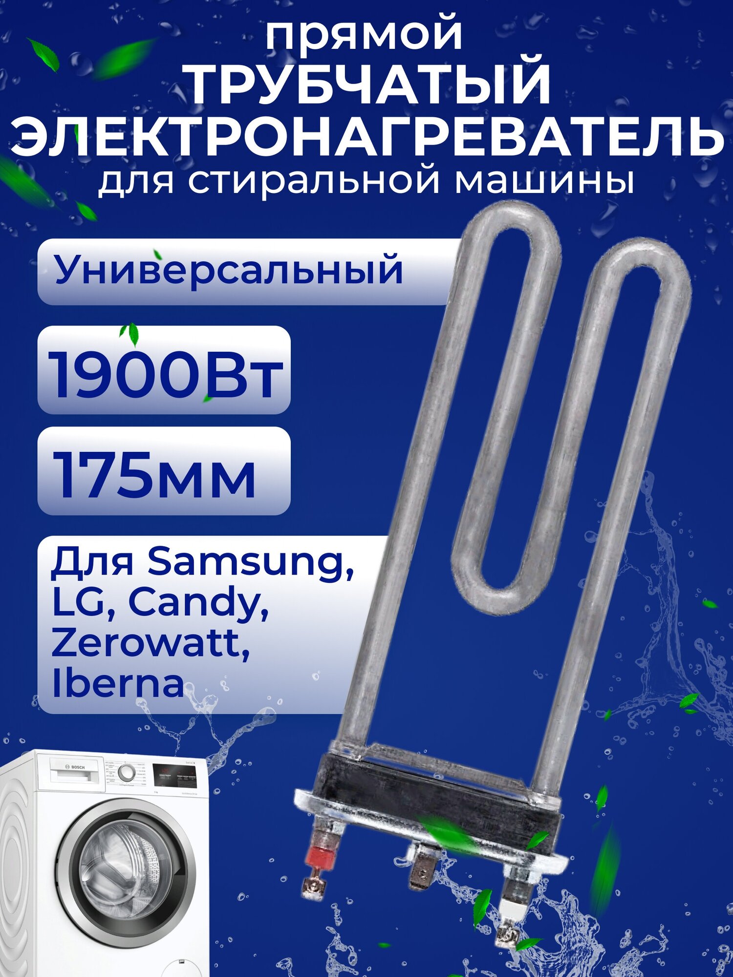 | Дополнительная информация | ТЭН подходит к стиральным машинам: Samsung, LG, Candy, Zerowatt, Iberna |