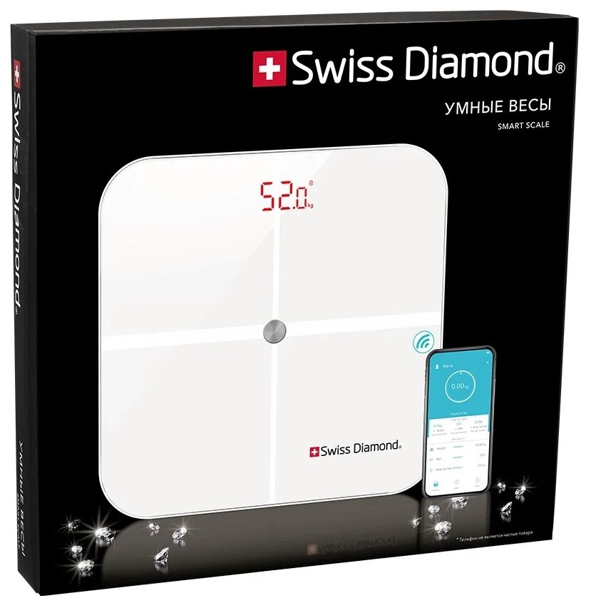 Напольные весы Swiss Diamond SD-SC 002 W / весы напольные электронные / умные весы / диагностические весы, белый