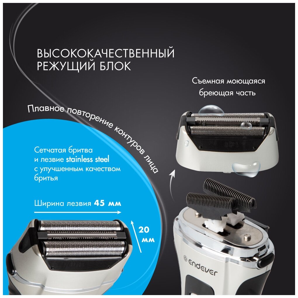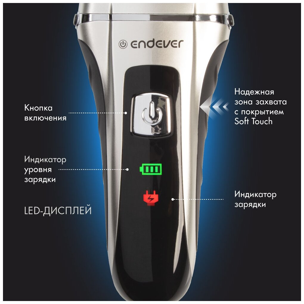 Шейвер для сухого и влажного бритья, электробритва мужская электрическая ENDEVER SVEN-967, время работы от аккумулятора 65 минут