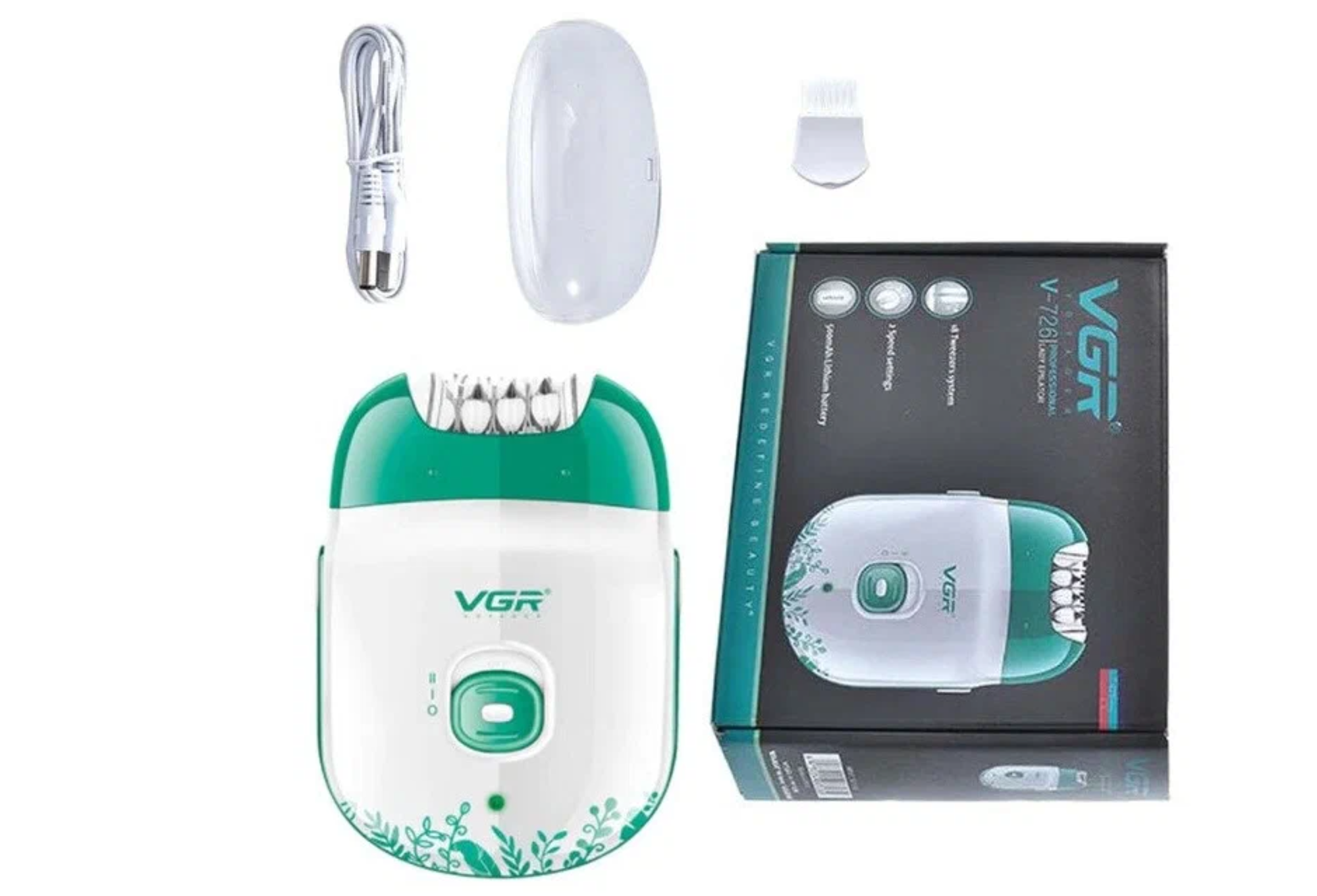 | Подробная комплектация | Эпилятор VGR V-726; Защитный колпачок; USB-кабель; Щеточка для очистки. |