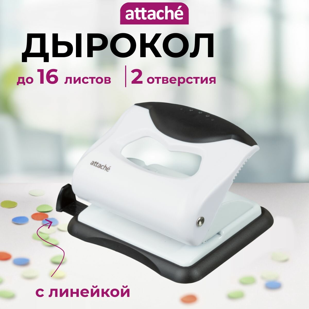 Дырокол Attache Master, до 16 листов, линейка, белый/черный