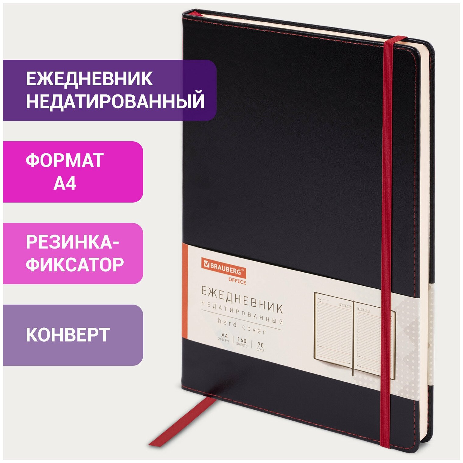 113285, Ежедневник недатированный большой формат 210х297 мм А4, BRAUBERG Office, 160 л., черный, 113285