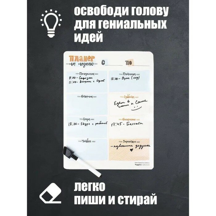 Планер магнитный HAPPYLINE "На неделю", 22*29 см, с маркером