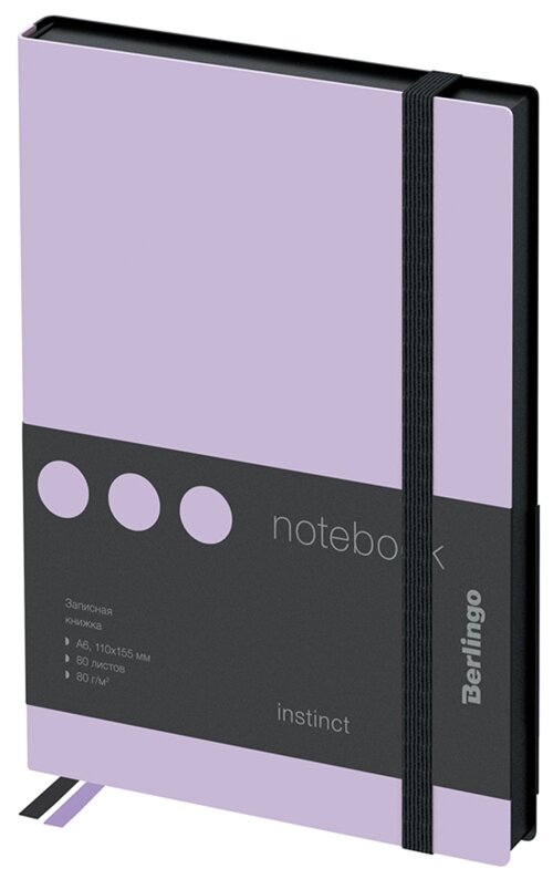 Записная книжка А6 Berlingo "Instinct", 80 листов, черный срез, черный/лаванда, с резинкой (NB0_91603)