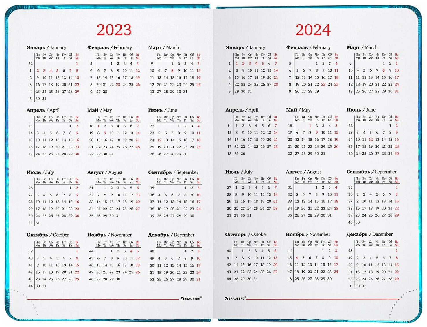 Ежедневник-планер (планинг) / записная книжка / блокнот датированный на 2023 год формата А5 (138x213 мм) Brauberg Holiday, под кожу, зеркальный