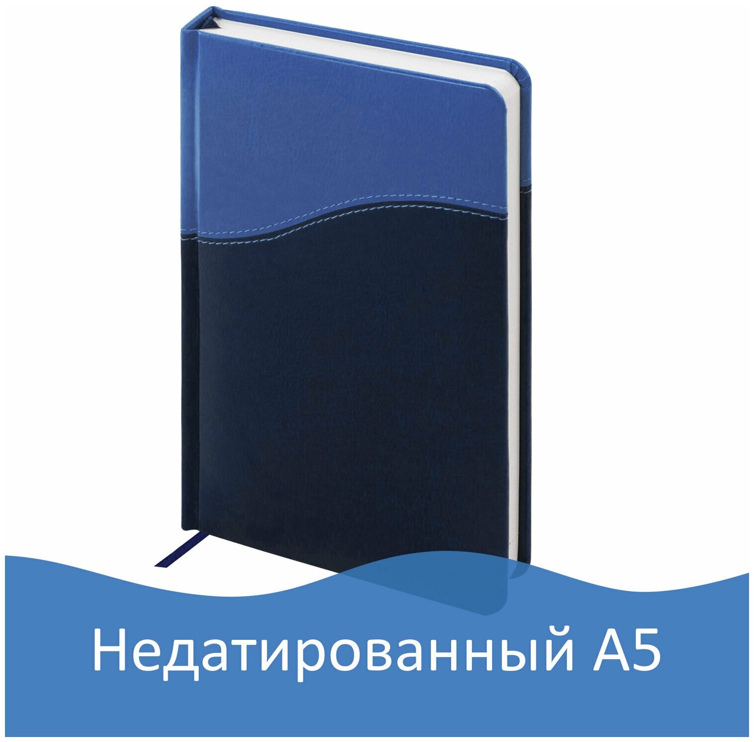 Ежедневник Brauberg недатированный А5 (138*213 мм) "Bond", под комбинированную кожу с волной, 160 листов, темно-синий/синий (126220)