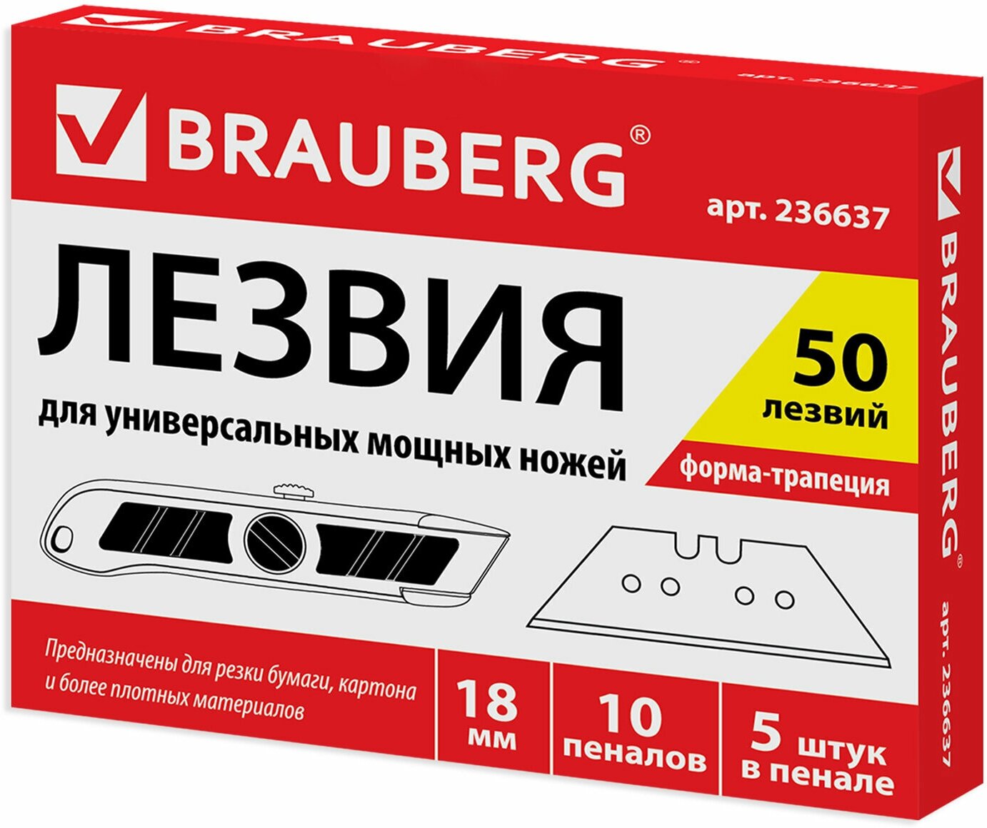 Лезвия BRAUBERG 236637, комплект 5 шт.