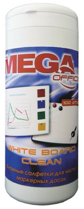 Салфетки для чистки белых маркерных досок Mega Office White Board Clean (100 штук вискоза), 134429