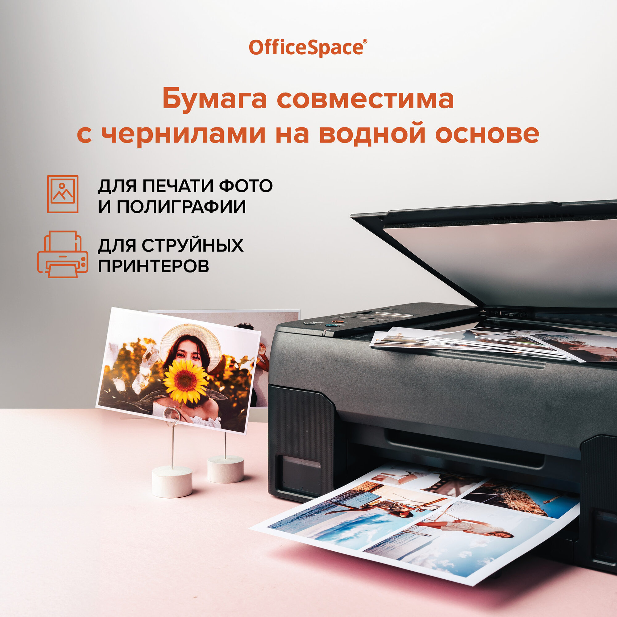 Фотобумага А4 матовая для струйной печати 50 листов / Бумага для фотографий 230 г/м2 OfficeSpace односторонняя
