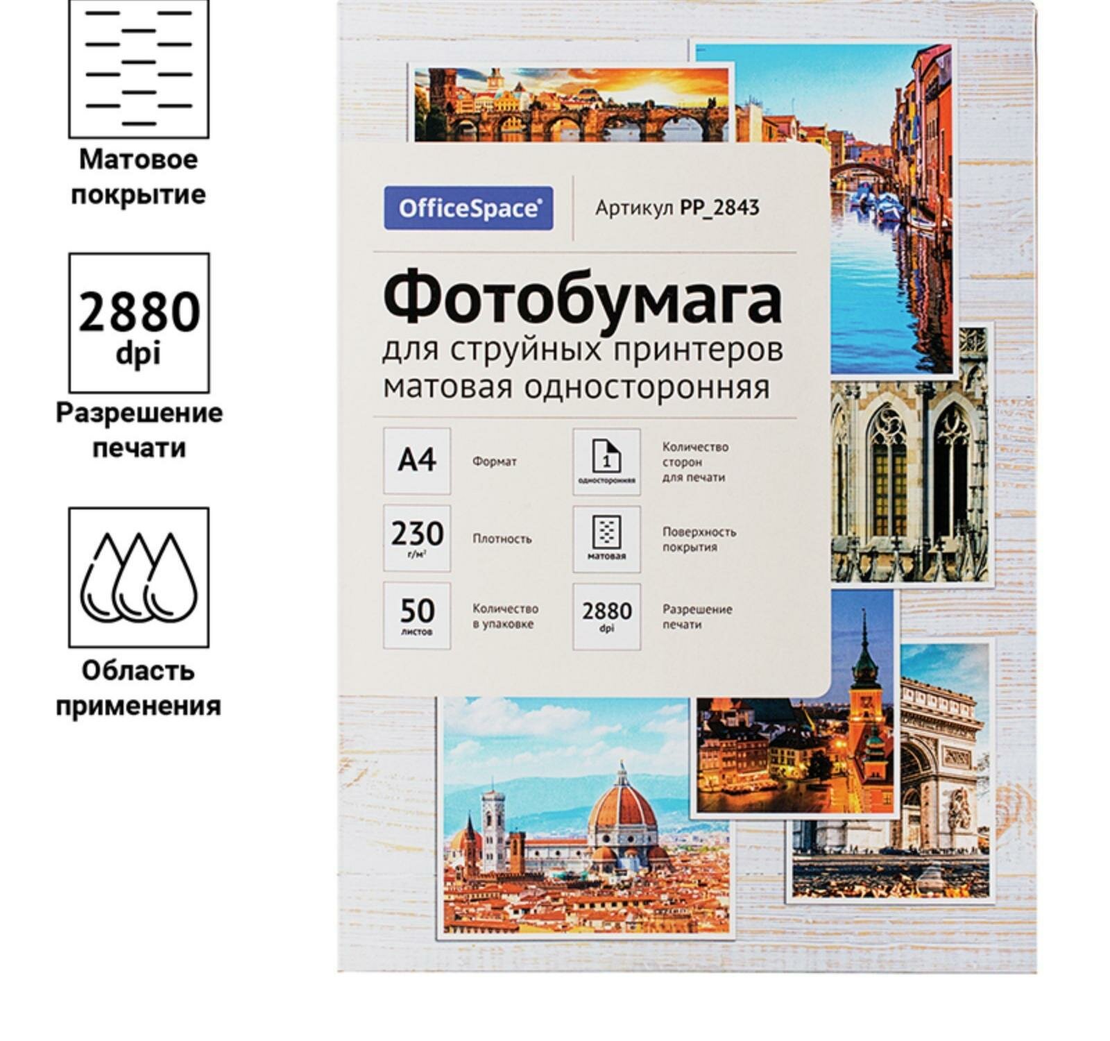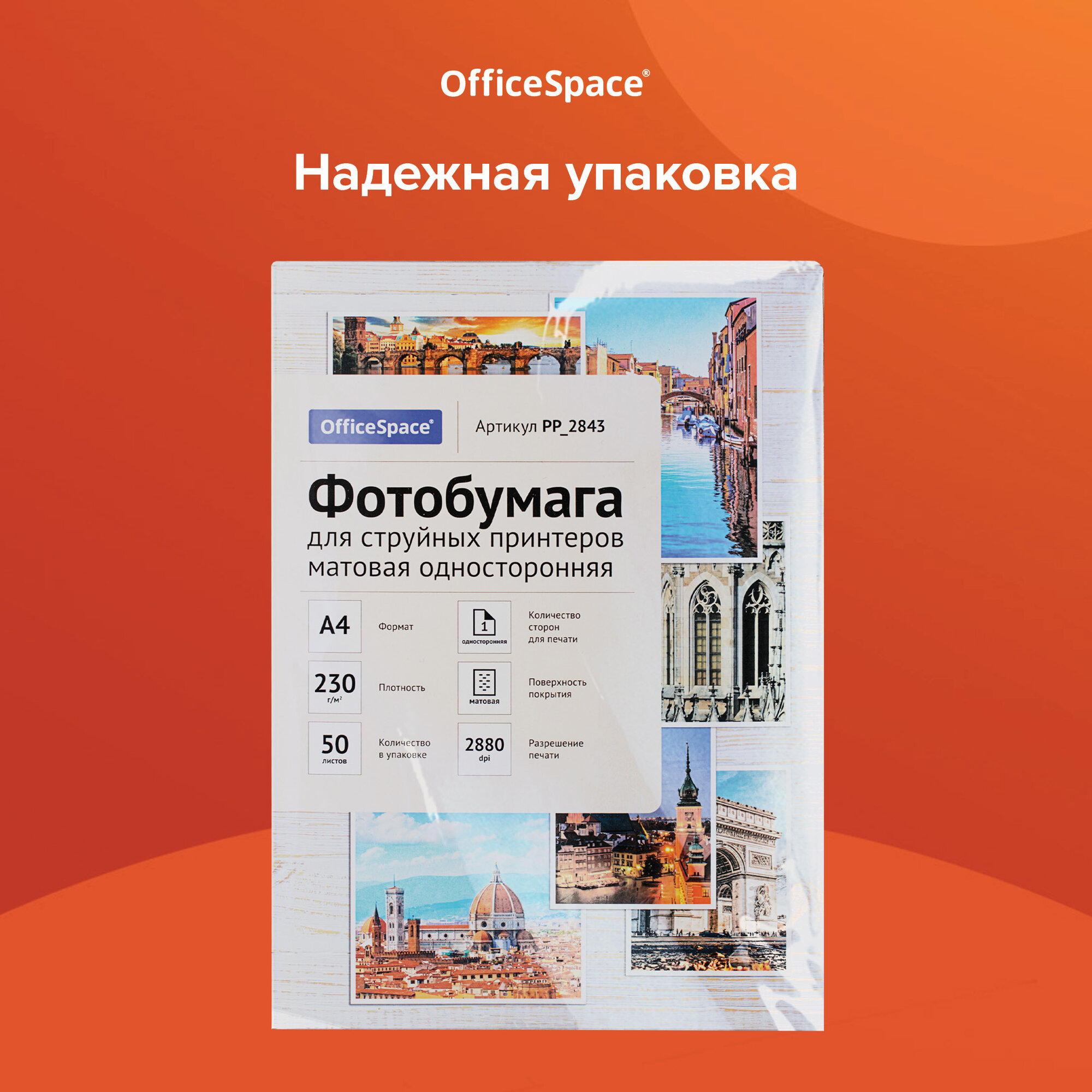 Фотобумага OfficeSpace для струйных принтеров, А4, 50 листов, матовая, односторонняя, 230 г/м2 (PP_2843)
