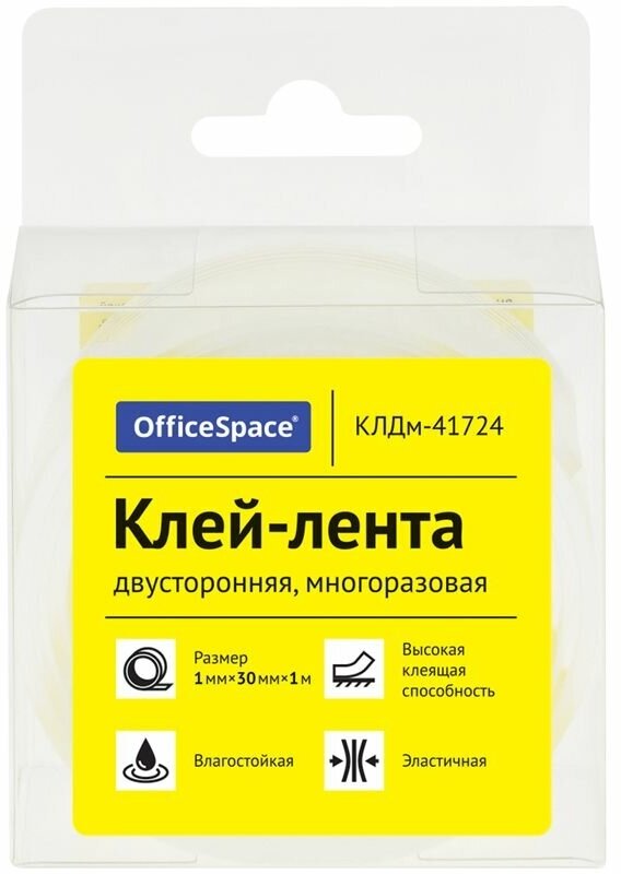 Клей-лента двусторонняя многоразовая OfficeSpace, 30мм*1мм*1м (КЛДм-41724)