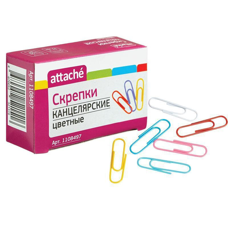 Скрепки Attache (33мм, металлические, с полимерным покрытием, цветные) 100шт.