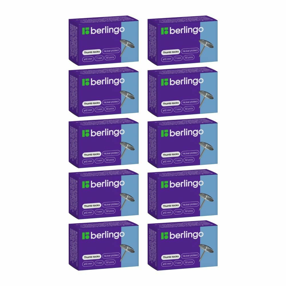 Кнопки канцелярские Berlingo, d=10мм, металлические никелированные, 50шт., картонная упаковка (RN5010n), 10 уп. интересное: