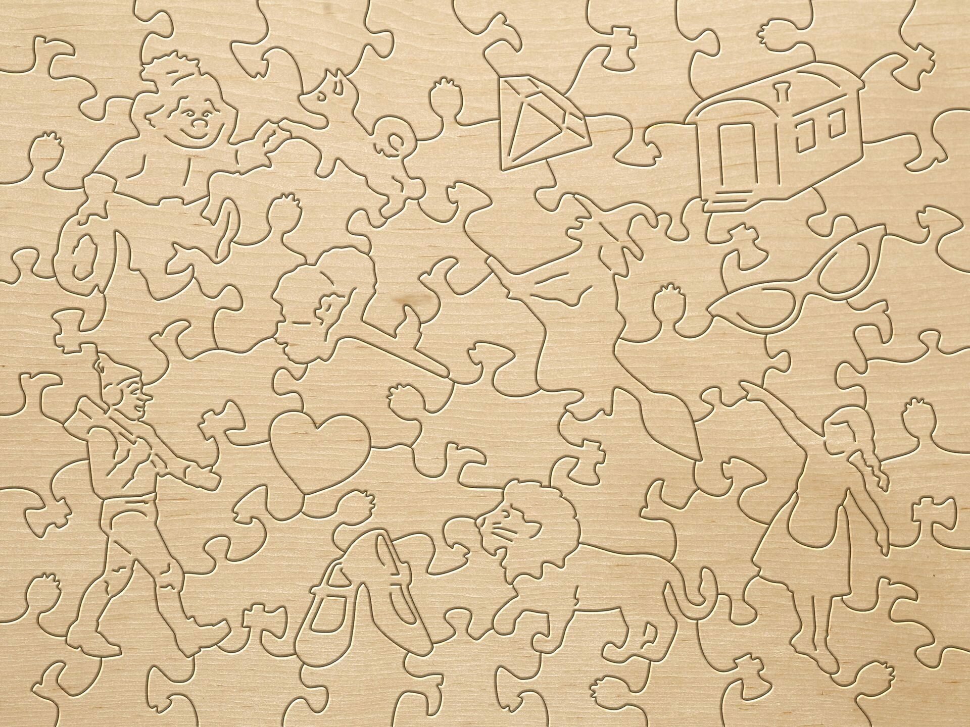 Фигурный деревянный пазл Волшебник изумрудного города, 65 деталей