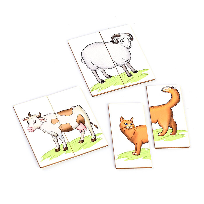 Купить Разрезные картинки-половинки с животными Smile Decor "Ферма", деревянный пазл для детей