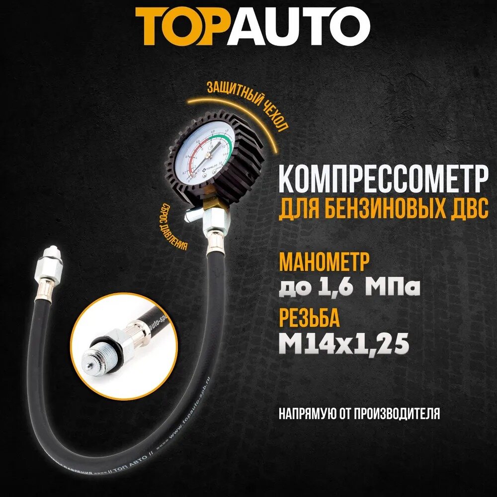 Компрессометр для авто ТОП авто "Гибкий", со шлангом, манометр в защитном чехле интересное: