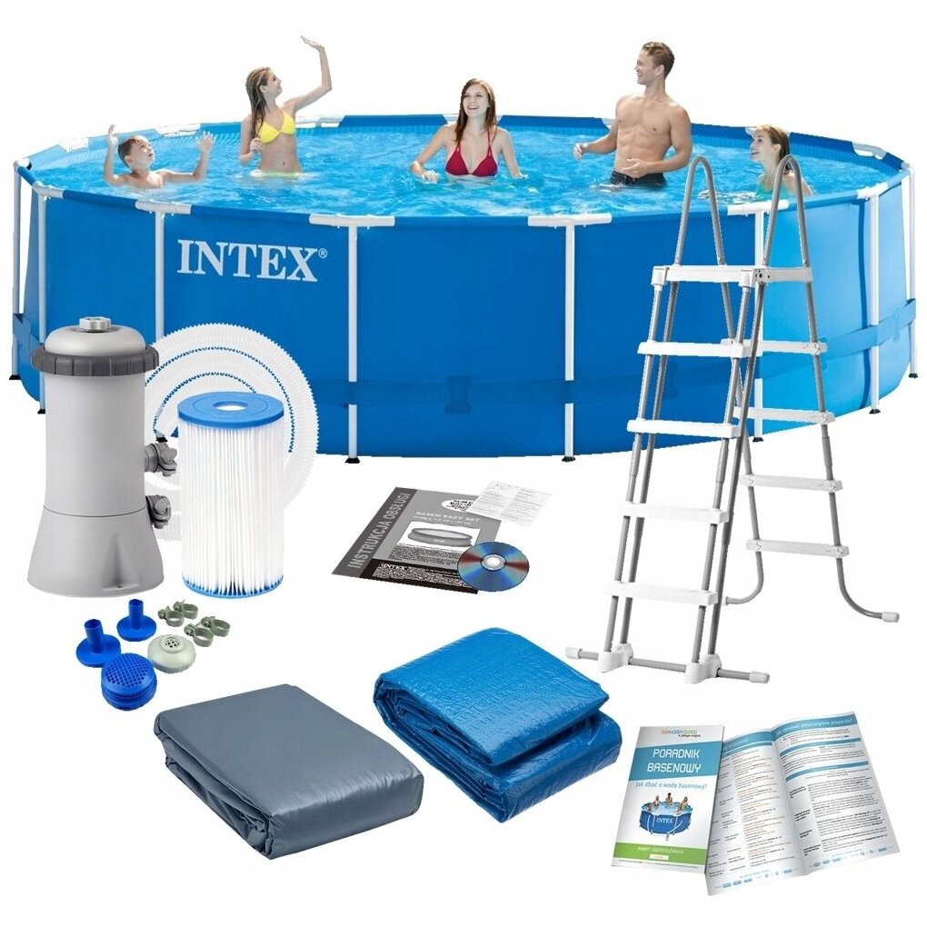 INTEX 28242 Каркасный бассейн Metal Frame 457х122см, фильтр-насос, лестница, тент, подстилка