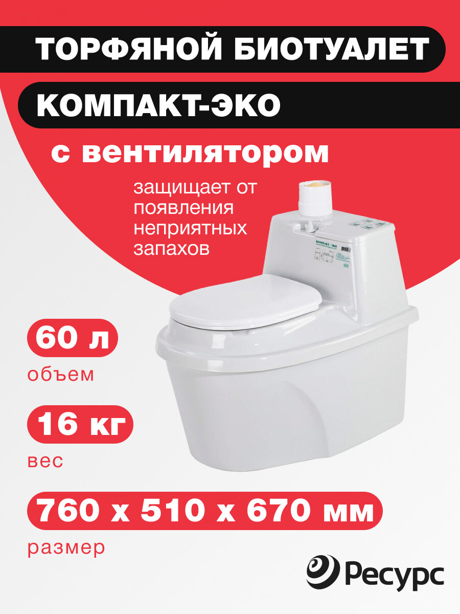 Торфяной компостирующий биотуалет «Компакт-ЭКО с вентилятором» 60л интересное: