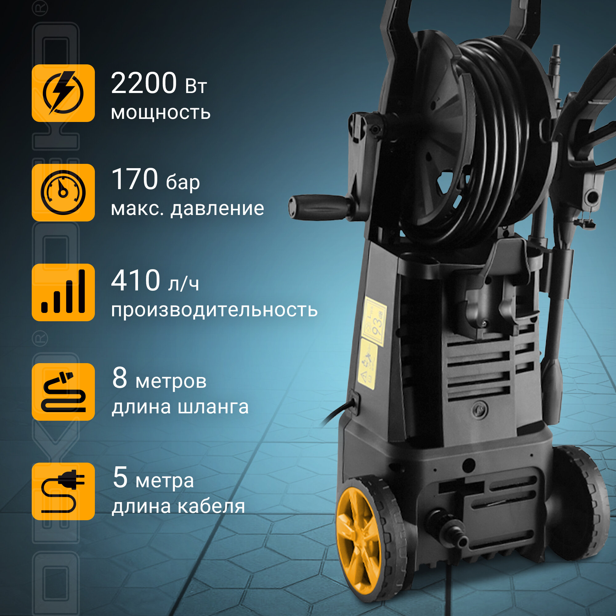 Мойка высокого давления DEKO DKCW170 PRO (2200 Вт, 170 бар, шланг 8 м)