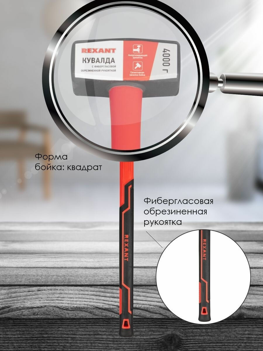 Купить Кувалда REXANT с фибергласовой обрезиненной рукояткой, 4000 г 12-8134