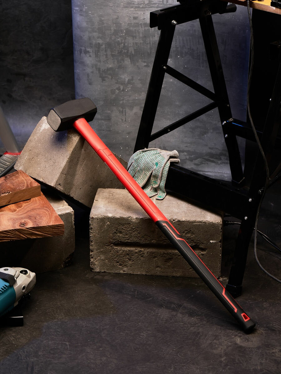 Стальная кувалда с фиберглассовой обрезиненной рукояткой, вес бойка 4 кг