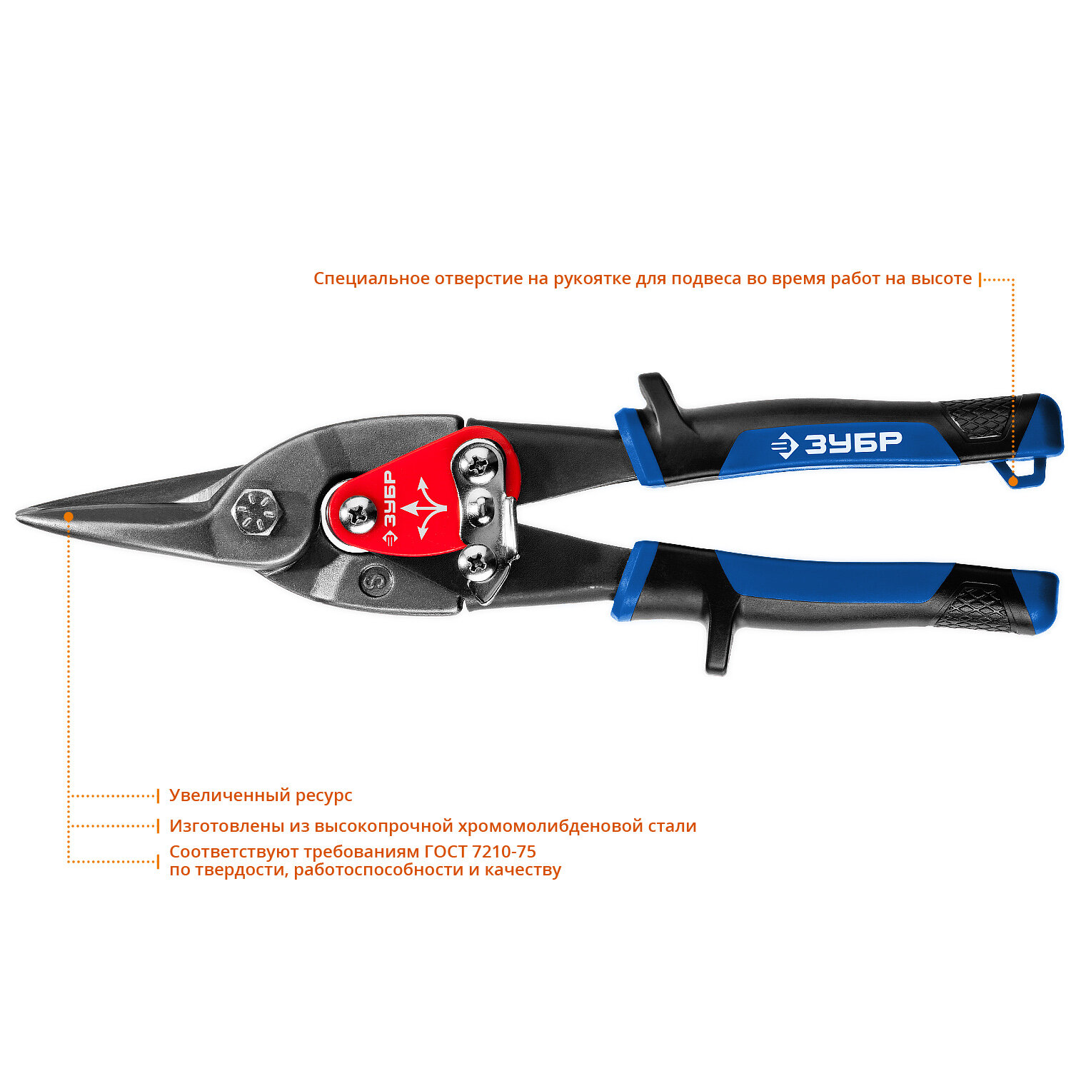 Ножницы по металлу ЗУБР мастер катран 250 мм, прямые, cr-mo
