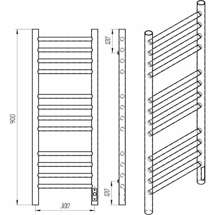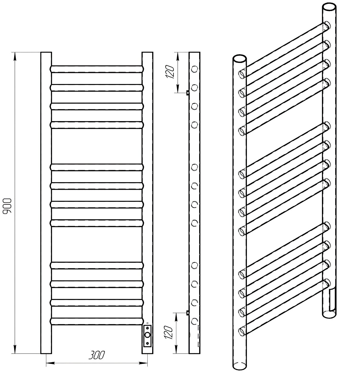 Полотенцесушитель электрический Laris Лаванда ЧКЧ П12 300х900 черный матовый, правый (73207623)