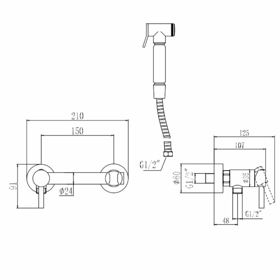 Смеситель для биде Savol S-FXQ004H с гигиеническим душем в туалет настенный черный