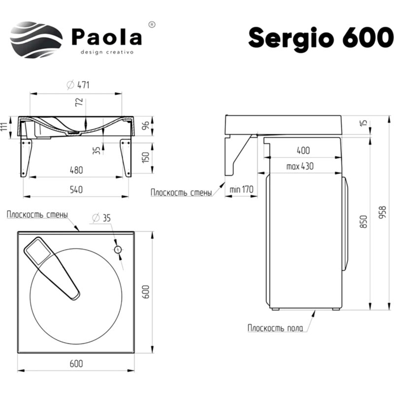 Раковина над стиральной машиной Paola Sergio, 60*60 см интересное: