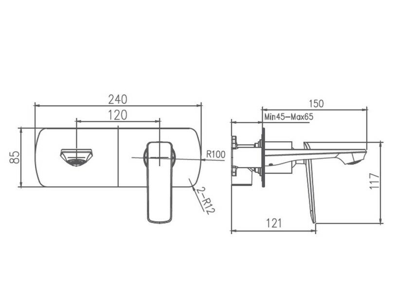 Смеситель для ванны Haiba Смеситель для ванны HB80548-7, встраиваемый, латунь, черный/хром