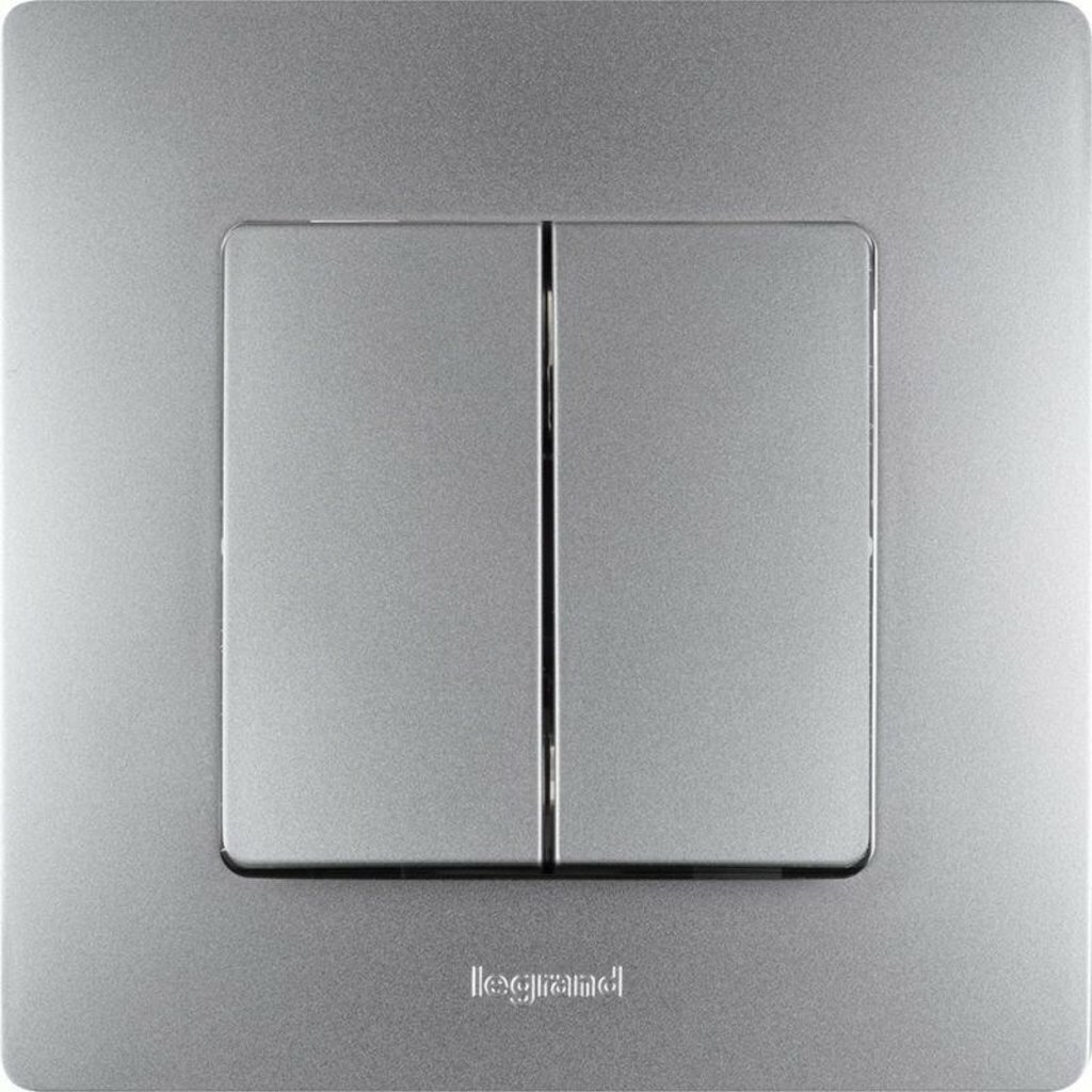 Legrand (Легранд) Выключатель двухклавишный цвета алюминий, Etika 672402